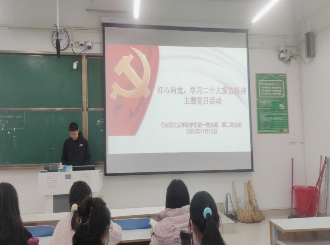 11月23日下午,77779193永利官网学生第一党支部、第二党支部在社科楼414教室开展“红心向党·学习二十大报告精神”主题党日活动。学生第二党支部全体党员参加此次活动。会议由于嘉宁同志主持。
