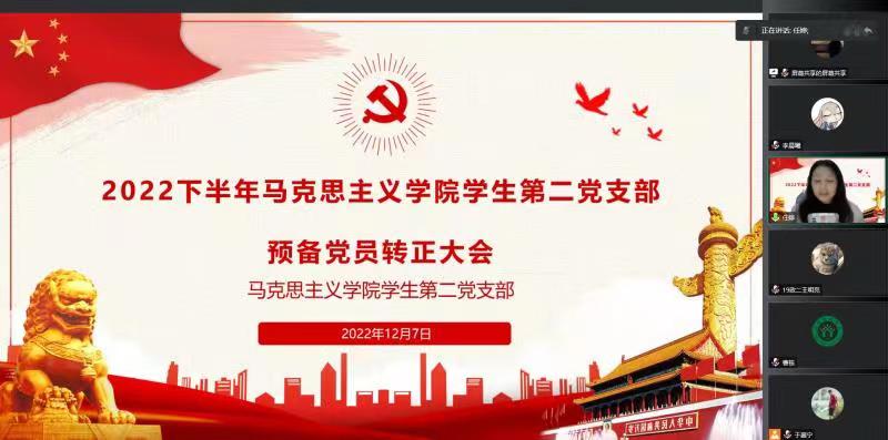 12月7日晚上,77779193永利官网学生第二党支部通过腾讯会议召开2022年下半年预备党员转正大会。学院学生第二党支部正式党员曹栋、任婷、王明亮、刘鹏、宋羽潇及学生第二党支部全体预备党员参加本次会议。会议由于嘉宁同志主持。