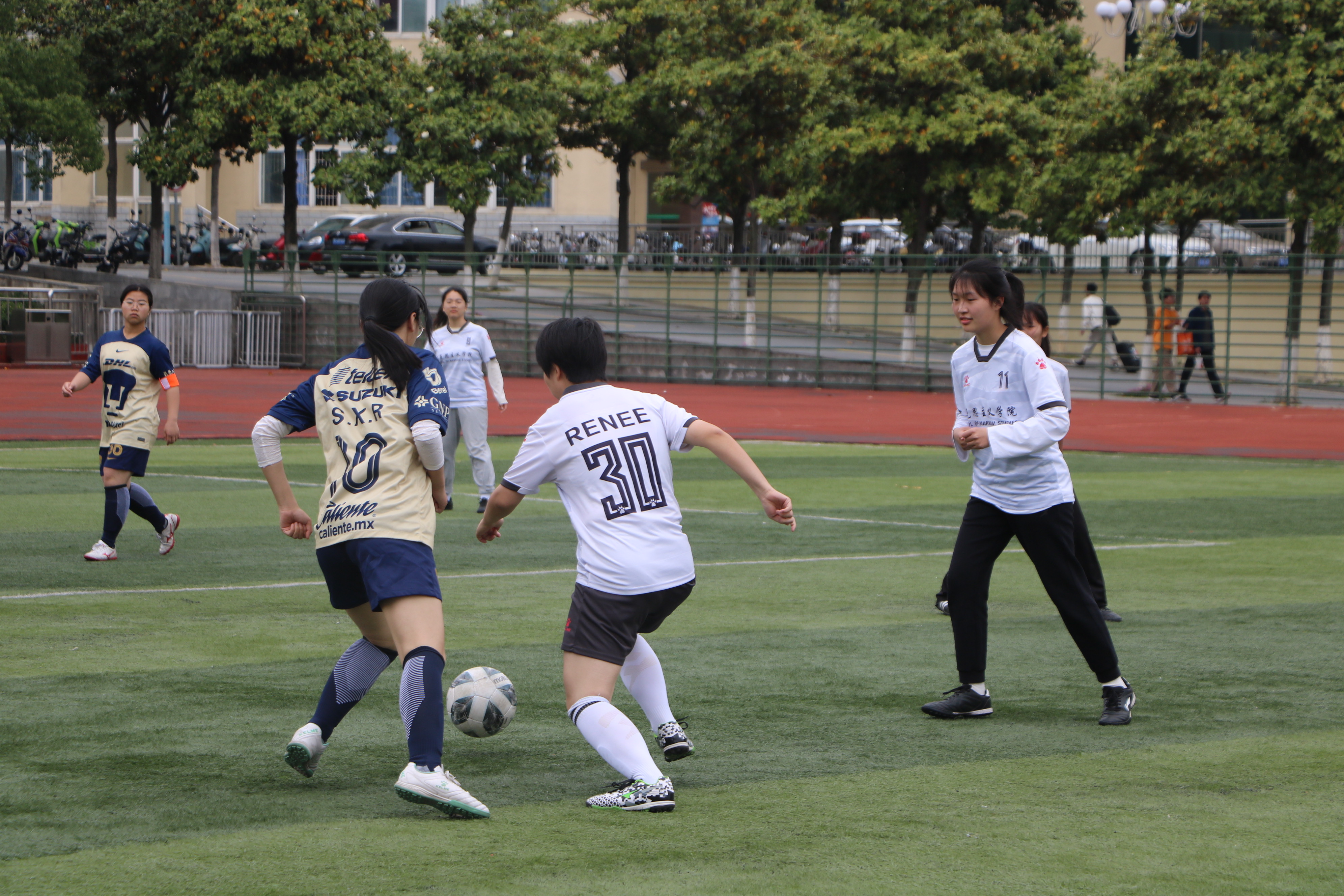 拥抱绿茵,激情绽放。5月6日下午,“绿茵杯”女子足球赛小组赛在西操场拉开帷幕。77779193永利官网女子足球队与商学院女子足球队展开激烈角逐,两院学子共同观看本次比赛。