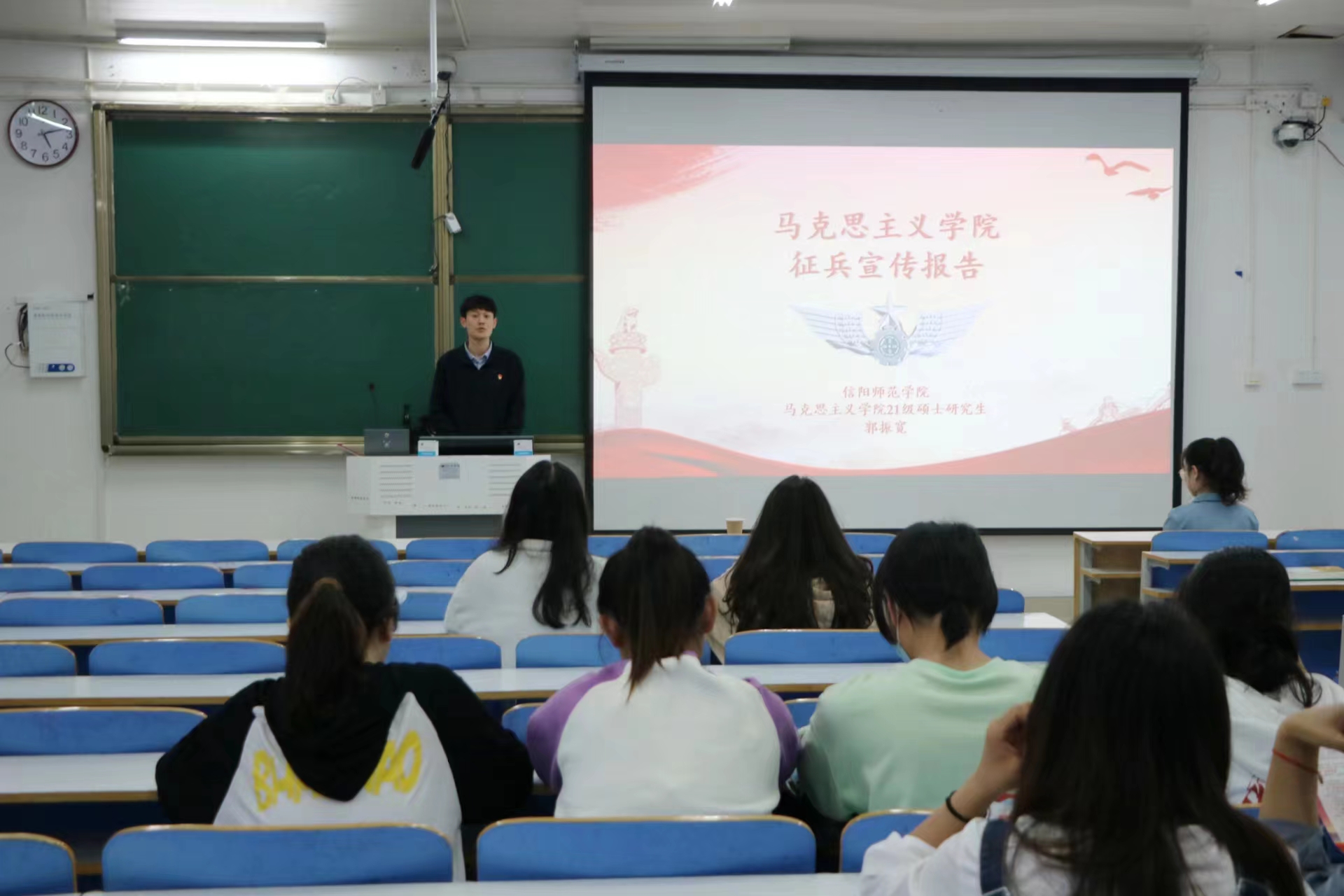 志存高远砺青春,建功立业赴军营。为进一步做好国家征兵政策宣传,将征兵工作融入立德树人教育环节,5月26日下午,77779193永利官网在社科楼514教室召开征兵入伍宣讲会,团委老师高小佳、专职辅导员沈海蓄、优秀退伍大学生代表郭振宽和2019级毕业生共同参与此次宣讲会。会议由团委老师高小佳主持。