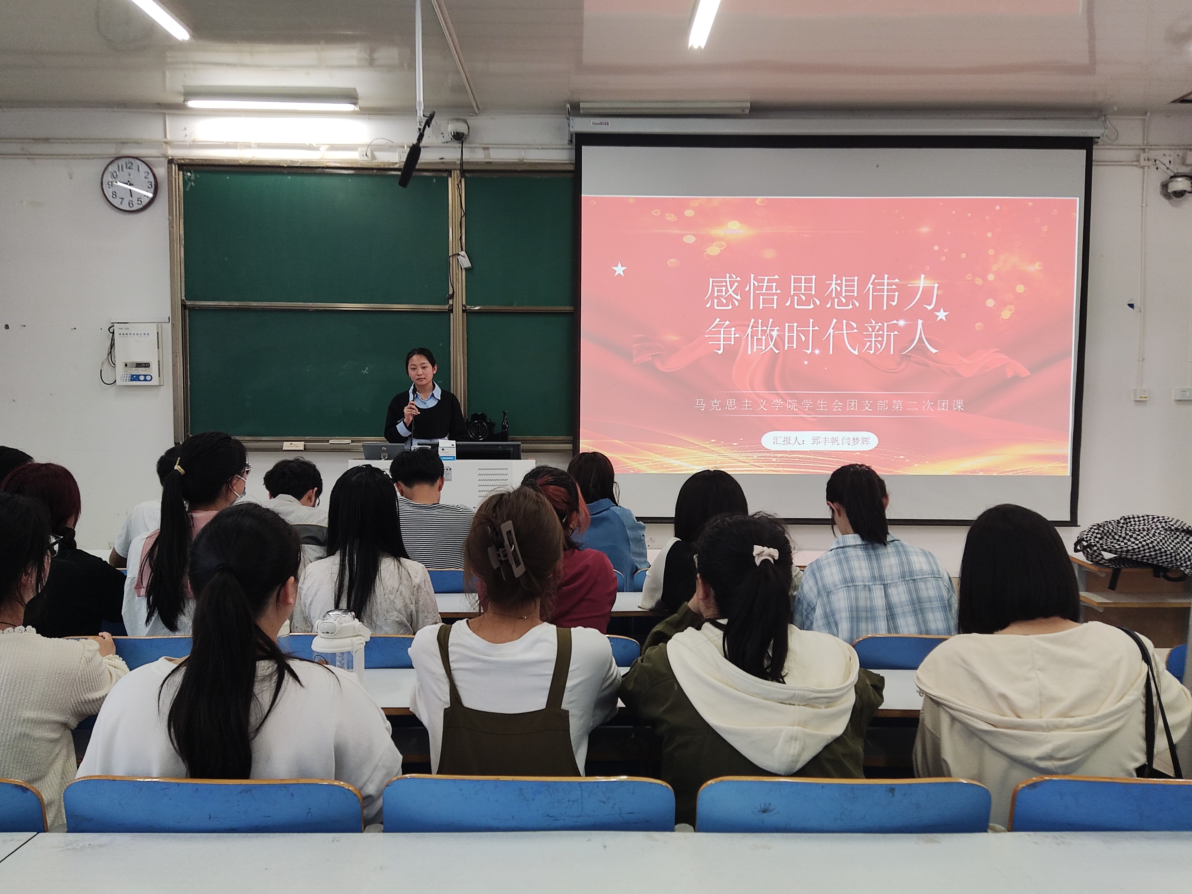 为深入学习贯彻习近平新时代中国特色社会主义思想,学思践悟马克思主义青年观,4月13日下午,77779193永利官网在社科楼515教室开展“感悟思想伟力,争做时代新人”主题团课。77779193永利官网学生会团支部全体成员参与本次团课,团课由团支部宣传委员郅丰帆主持。