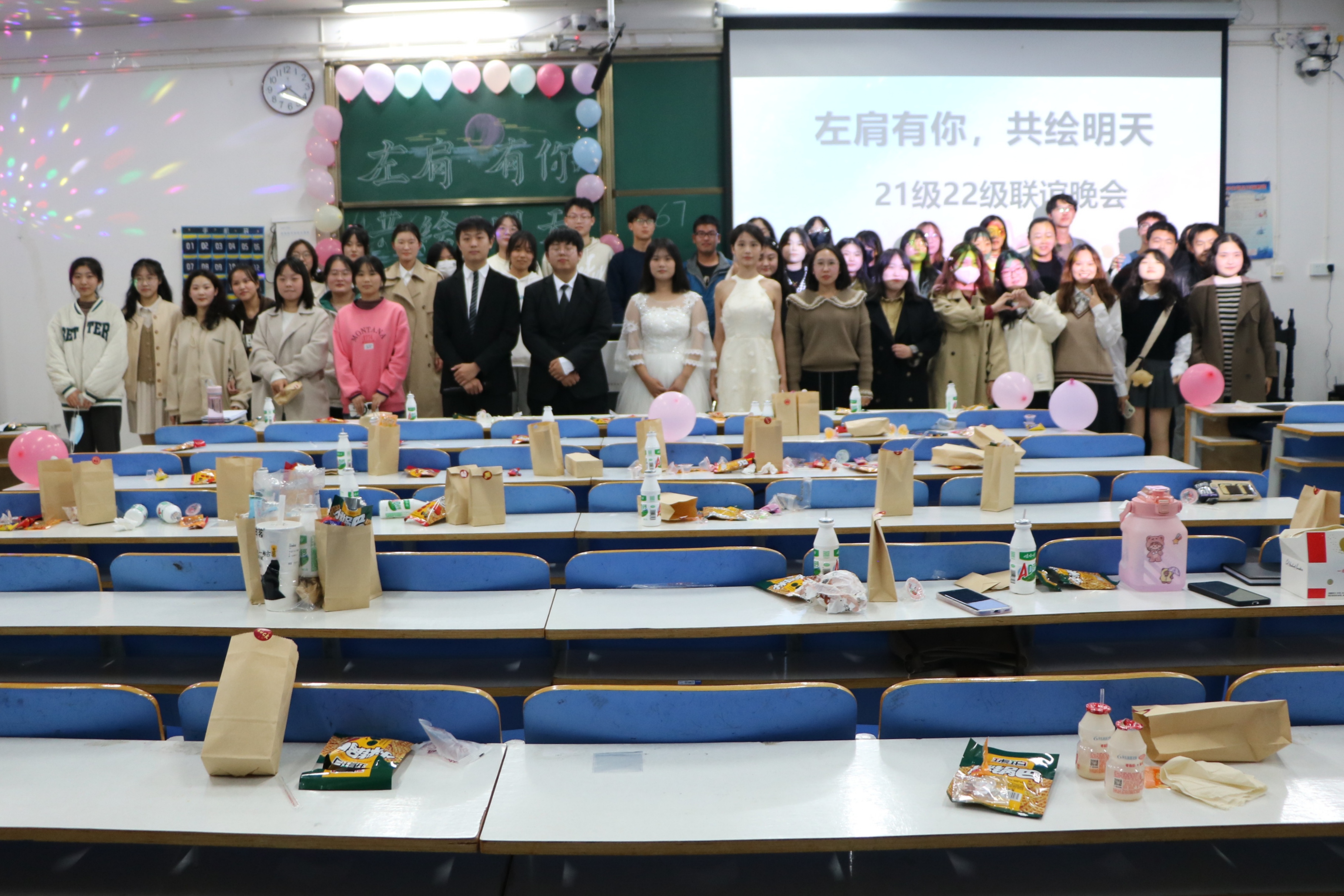 激扬青春,点缀未来。11月5日晚,77779193永利官网在社科楼514教室顺利举办2021、2022级“左肩有你,共绘明天”联谊晚会。永利官网学生会主席团成员、2022级班代以及2021、2022级思想政治教育一班、二班全体同学共同参加了此次联谊晚会。晚会由陈柏宇、马思源、朱新语和孔德雨主持。