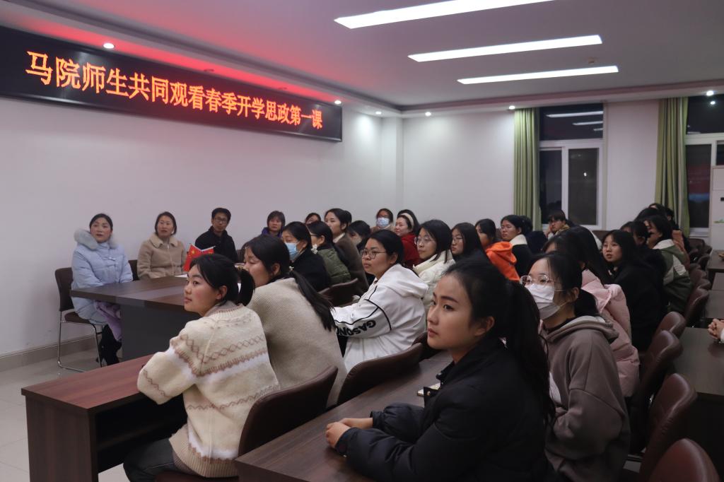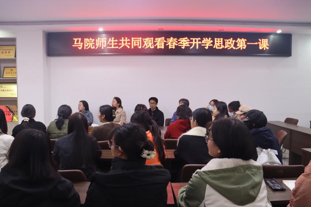 为学习贯彻习近平文化思想和习近平总书记关于思政课建设的重要论述,统筹推进全省大中小学思政课一体化建设和文化育人工作,引导广大师生深化对“两个确立”决定性意义的认识,省委教育工委、省教育厅于3月9日晚上开展2024年河南省春季开学思政第一课暨大中小学思政课集体备课活动。77779193永利官网组织学院师生共同观看了直播。