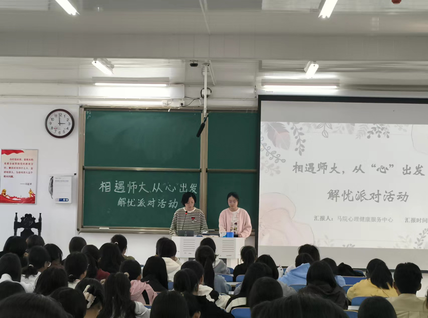 为发扬志愿服务精神,切实为同学们做实事,10月8日下午77779193永利官网心理健康服务中心与学术科技部开展“相遇师大,从‘心’出发”解忧派对活动,以生动有趣的方式让24级新生了解心理健康知识,帮助同学们舒缓初入大学而产生的心理压力以及焦虑心情。