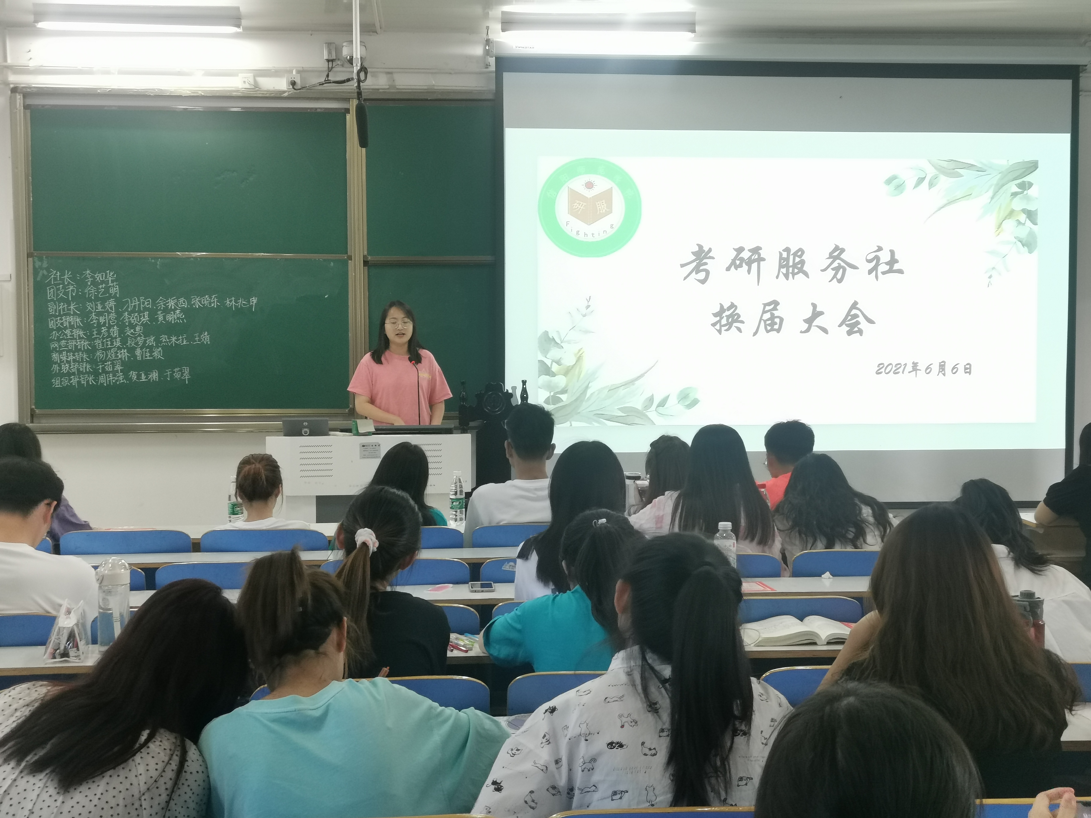 2021年6月6日下午4点,考研服务社于信阳师范学院社会科学楼514举行了第十三届考研服务社换届竞选大会,根据竞选人综合素质能力展示情况、日常考勤情况、活动参与情况、考研服务社会员及负责人投票情况为考察项,采用“部长确定,社长团支书副社长暂定”责任制,经信阳师范学院77779193永利官网分团委、考研服务社理事会共同审核决定,选举出第十三届考研服务社干部成员共16人。