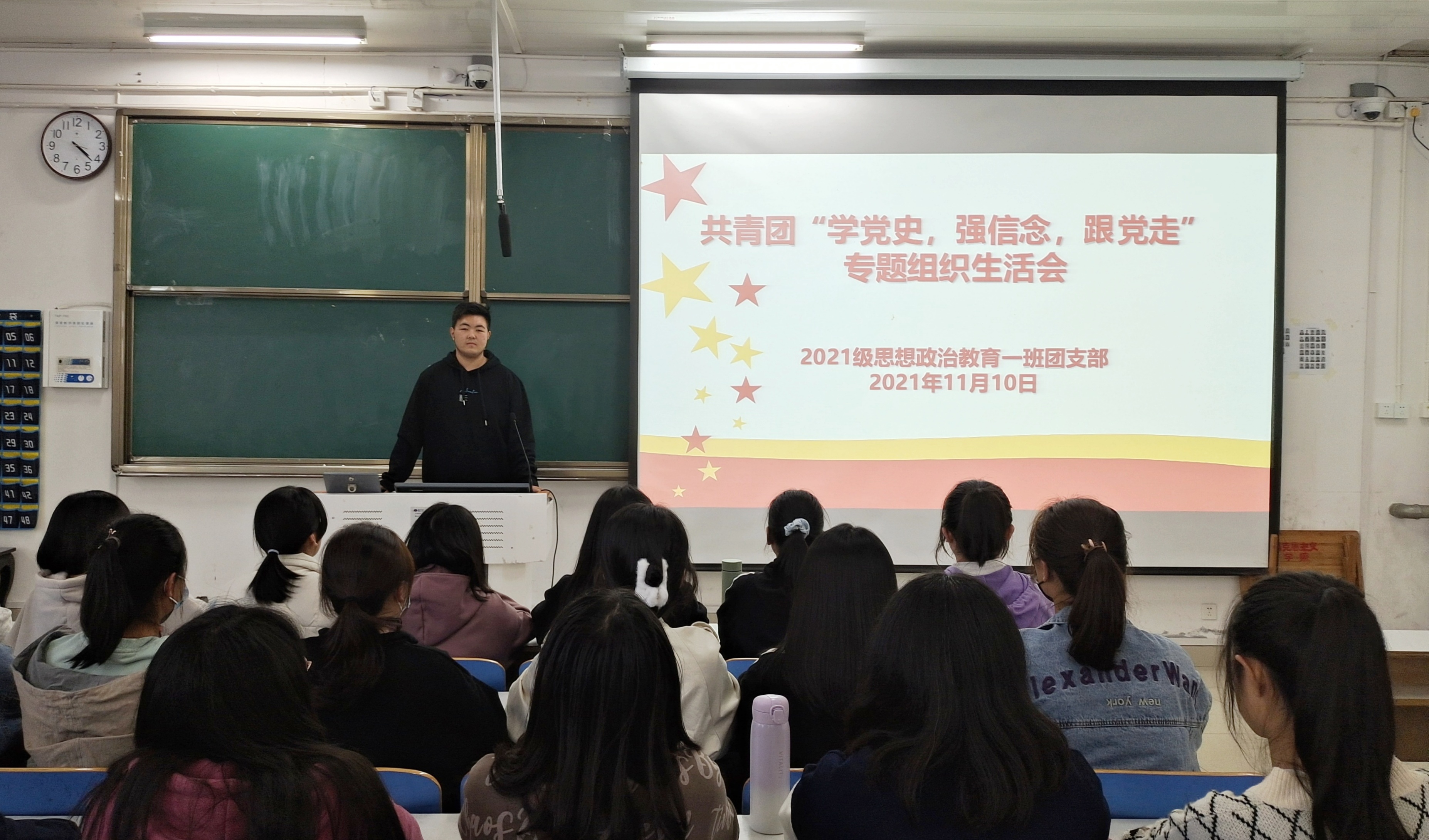响应共青团“学党史、强信念、跟党走”的号召,11月10日下午,77779193永利官网2021级思想政治教育一班在社科楼516教室召开组织生活会。2021级思想政治教育一班全体成员参加了本次大会。会议由团支书戴翰林主持。