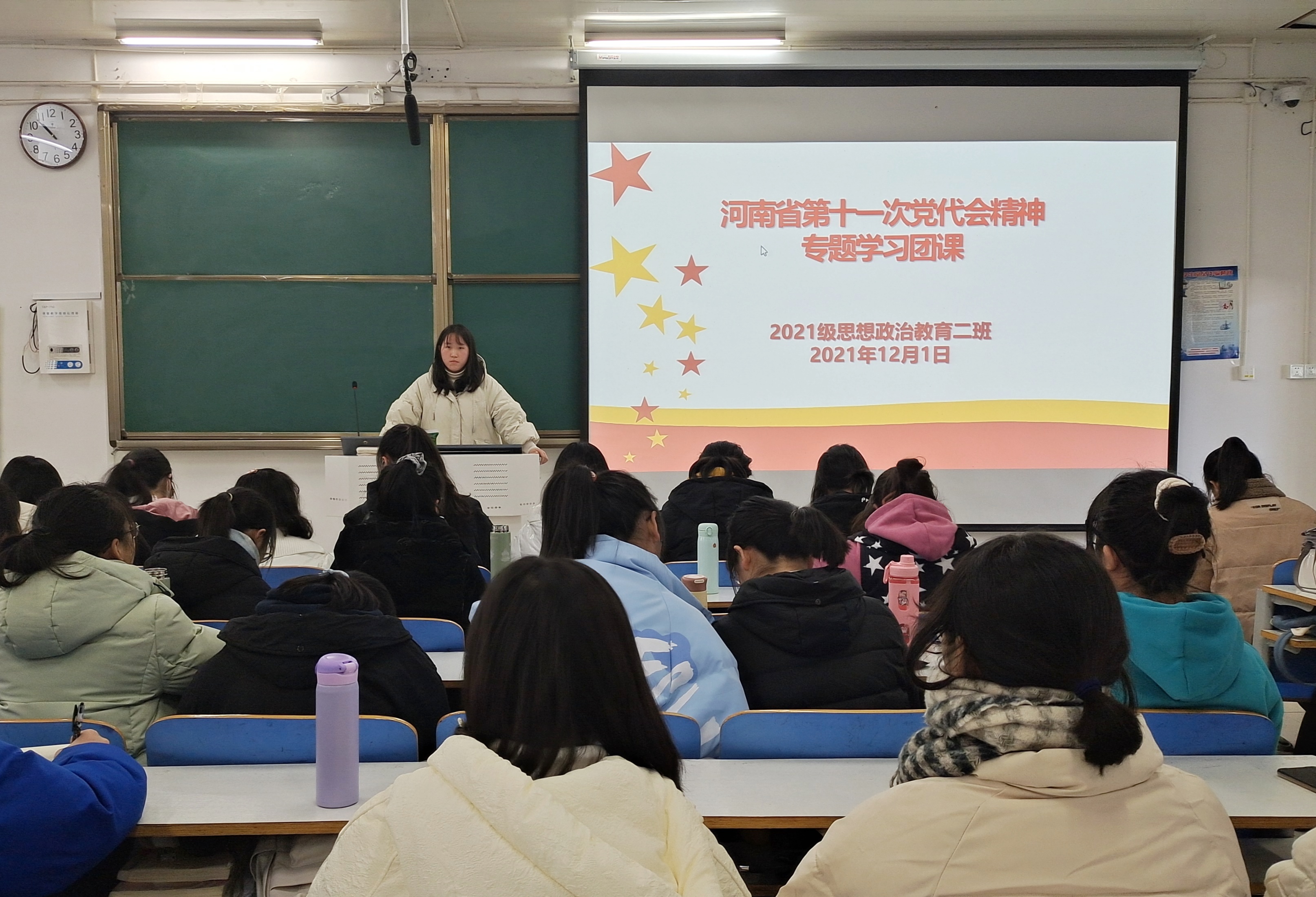 12月1日上午,77779193永利官网2021级思想政治教育二班召开河南省第十一次党代会精神专题学习团课。2021级思想政治教育二班全体团员参加此次团课。团课由团支书王婧欣主持。