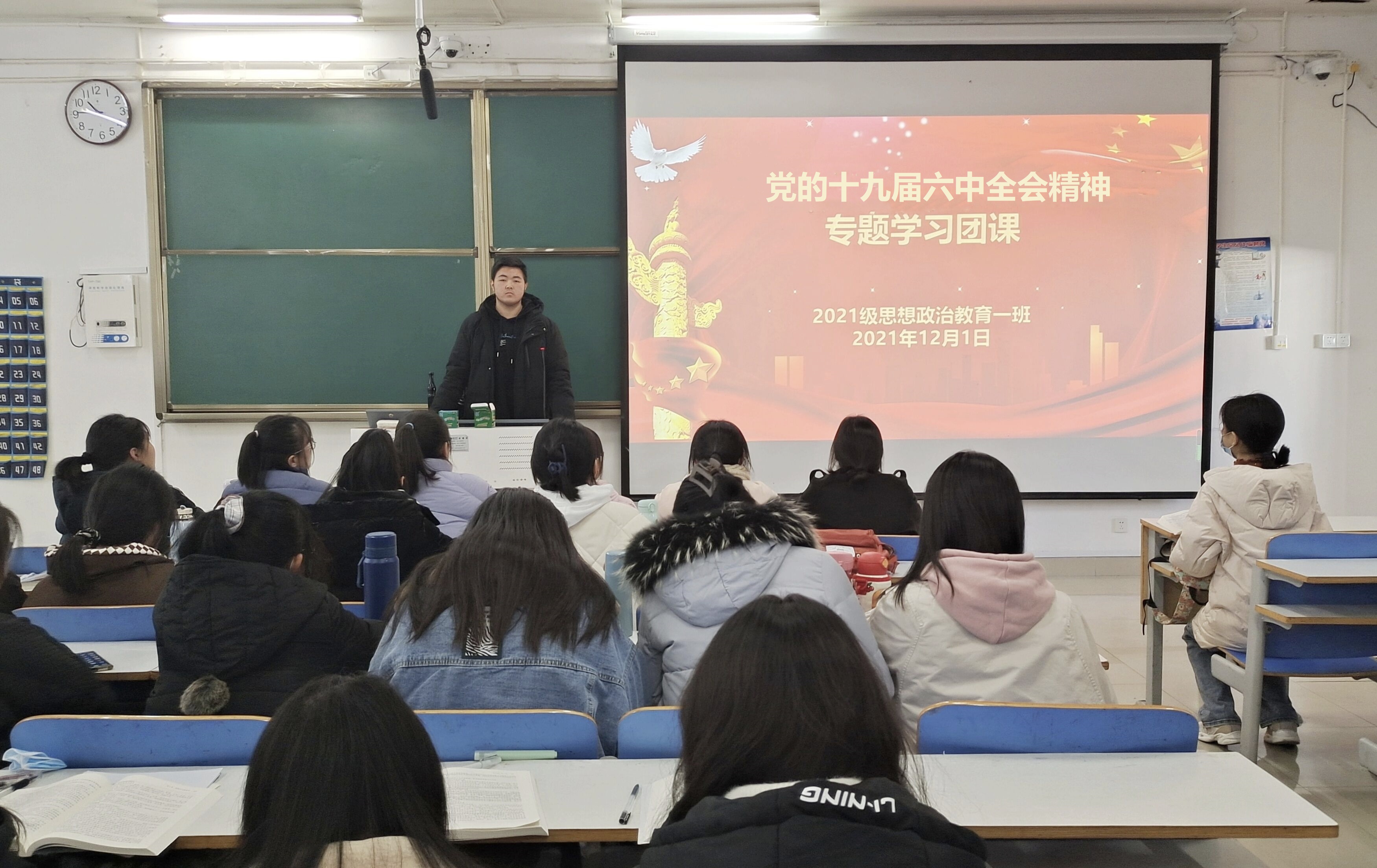 12月1日上午,77779193永利官网2021级思想政治教育一班在社科楼516教室召开党的十九届六中全会精神专题学习团课。2021级思想政治教育一班全体团员参加本次团课。团课由团支书戴翰林主持。
