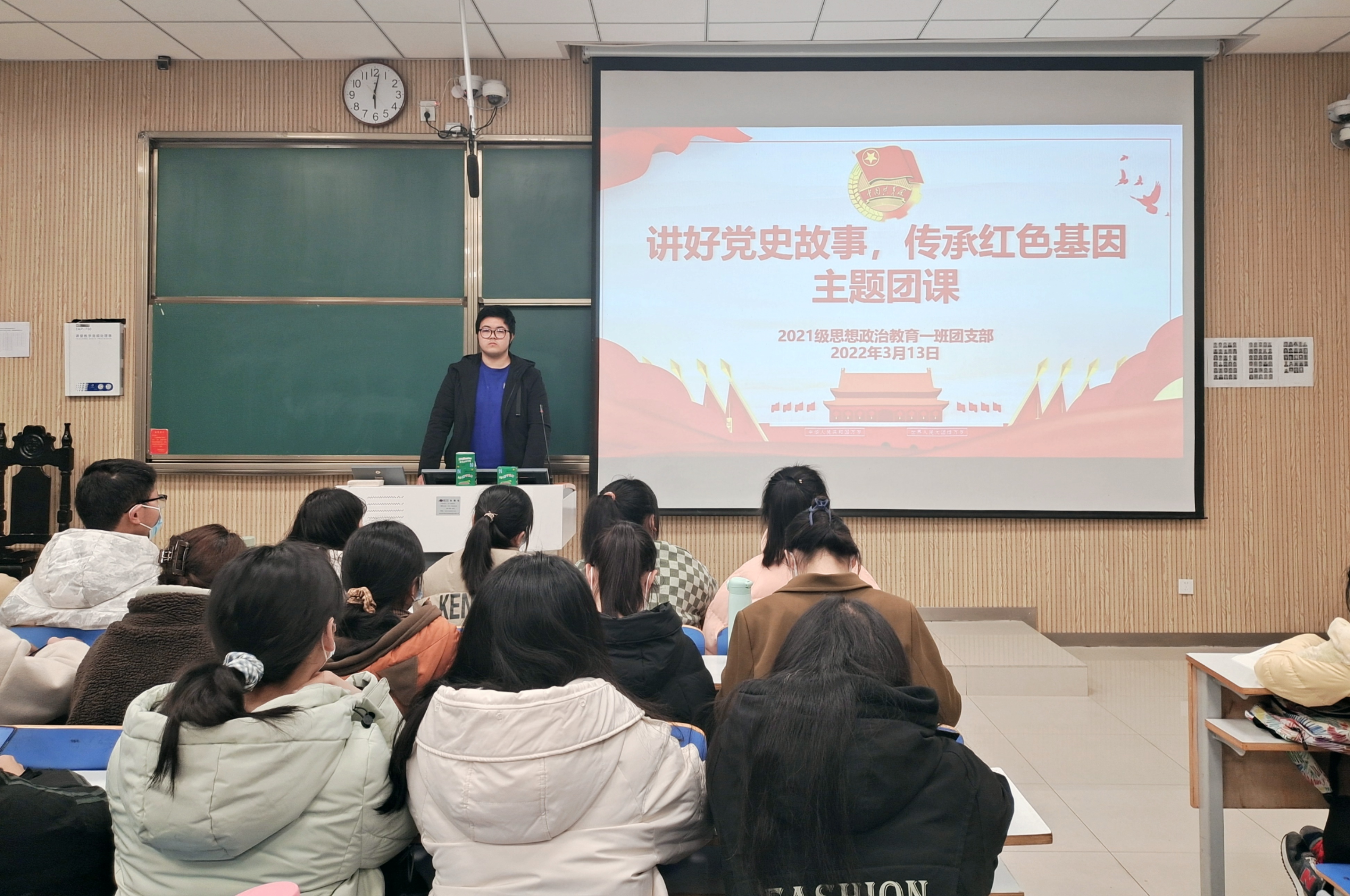 3月13日下午,77779193永利官网2021级思想政治教育一班在社科楼515教室召开“讲好党史故事,传承红色基因”主题团课。2021级思想政治教育一班全体团员共同参加了本次团课。本次团课由团支书戴翰林主持。