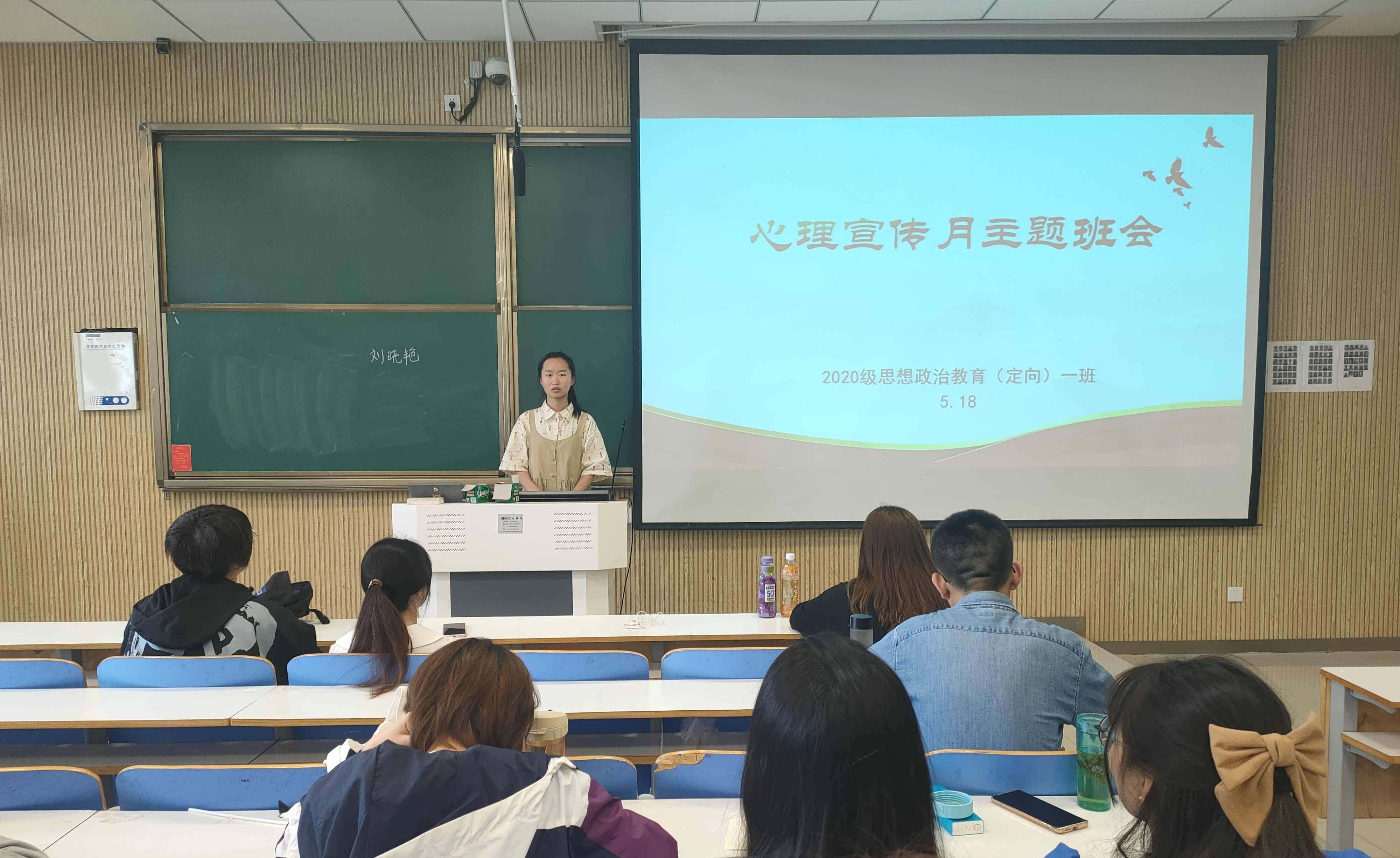 5月18日下午,77779193永利官网思想政治教育(定向)一班心理宣传月主题班会在社科楼515顺利举办。77779193永利官网思想政治教育(定向)一班全体学生聆听了此次班会。
