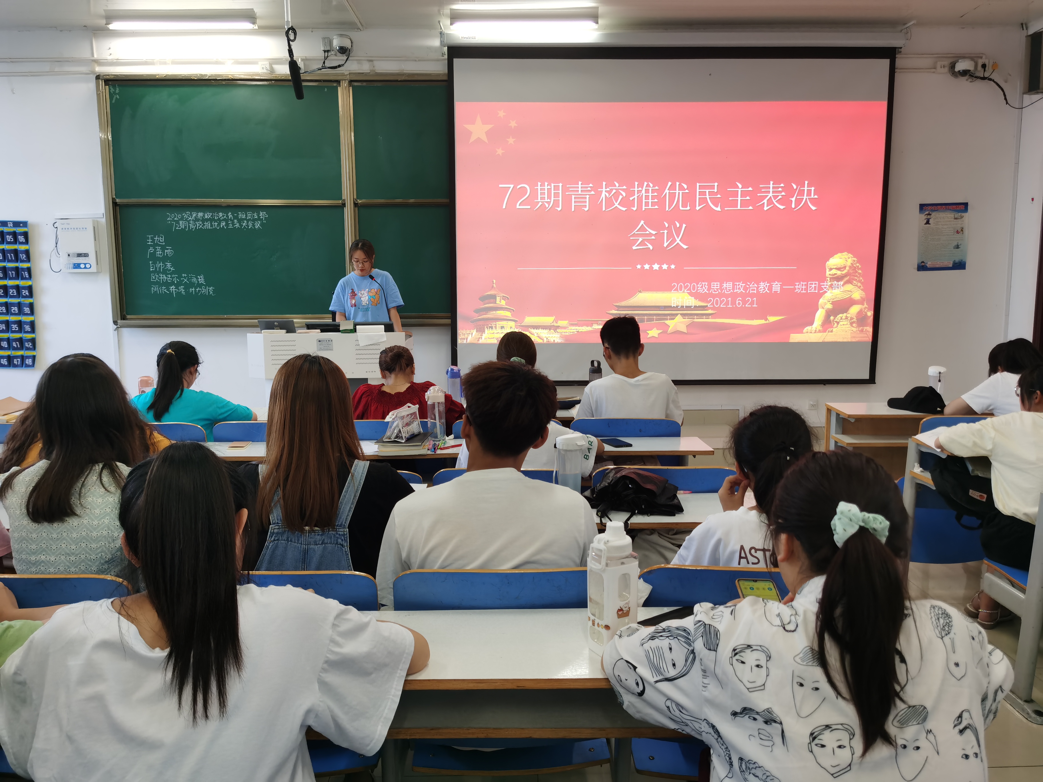 6月21日下午,77779193永利官网2020级思想政治教育一班在社科楼514教室召开72期青校推优表决会议,2020级思想政治教育一班全体团员参加本次表决会议,大会由团支书卢茜雨主持。