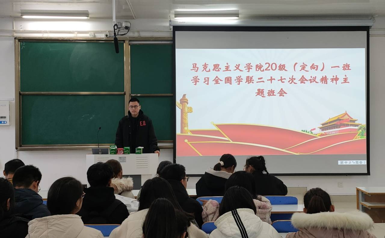11月24日上午,77779193永利官网定向一班在社科楼514教室顺利举办“深入学习全国学联第二十七次大会精神”主题班会。全体学生聆听了此次班会,班会由团支书朱紫峰主持。