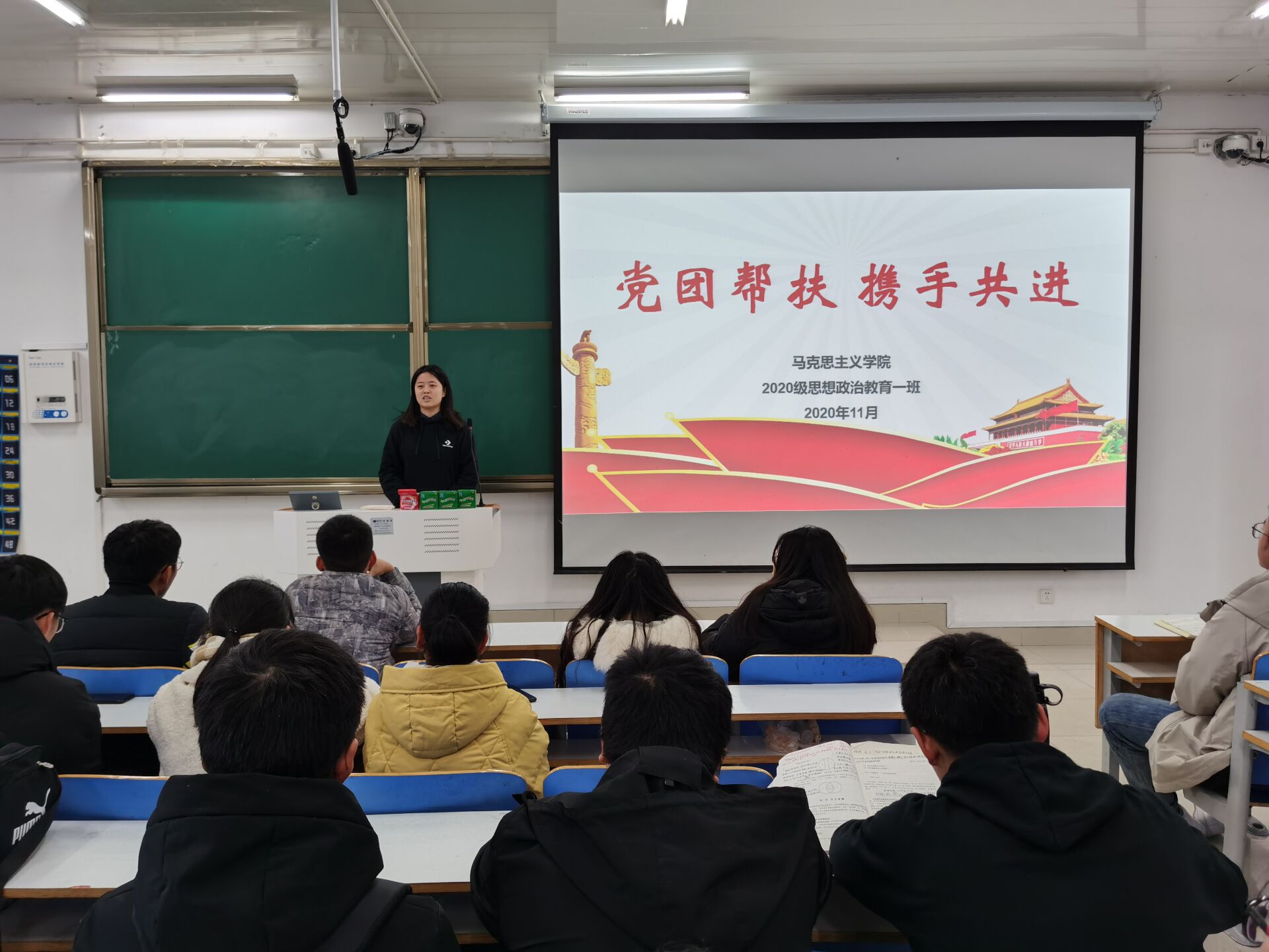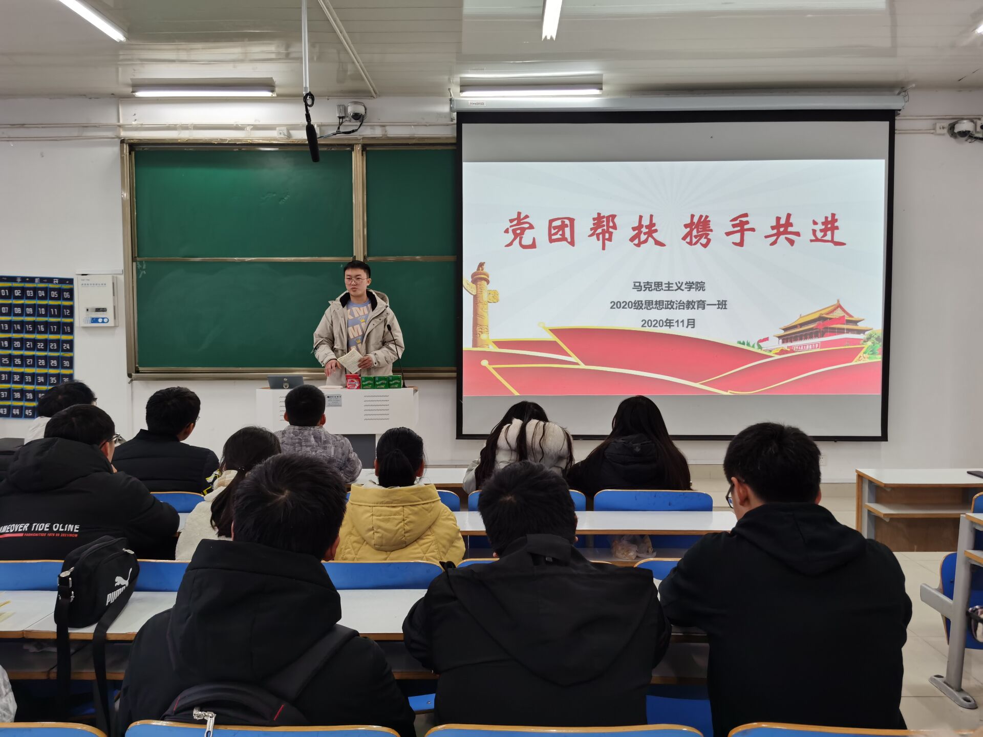 12月1日上午,77779193永利官网2020级思想政治教育一班在社科楼514教室开展了党团帮扶会活动。2017级思想政治教育一班王雅纯、2018级思想政治教育一班邢子豪以及2020级思想政治教育一班全体同学参加了本次活动,会议由团支书卢茜雨主持。