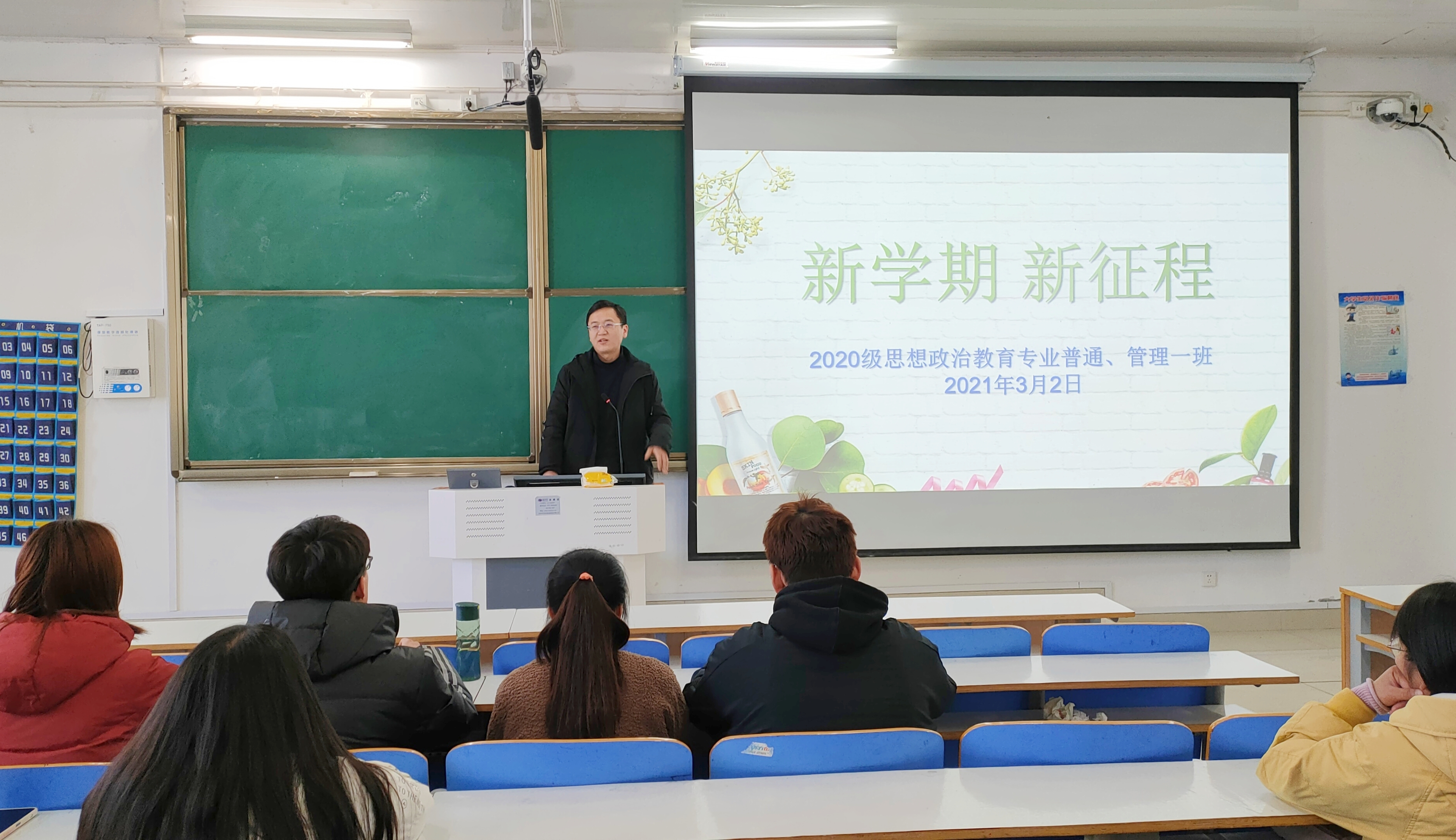3月2日下午,77779193永利官网2020级思想政治教育一班、定向一班在社科楼514教室顺利召开“新学期,新征程”主题班会,2020级思想政治教育一班、定向一班全体学生共同聆听了本次班会,班会由辅导员曹栋主持。