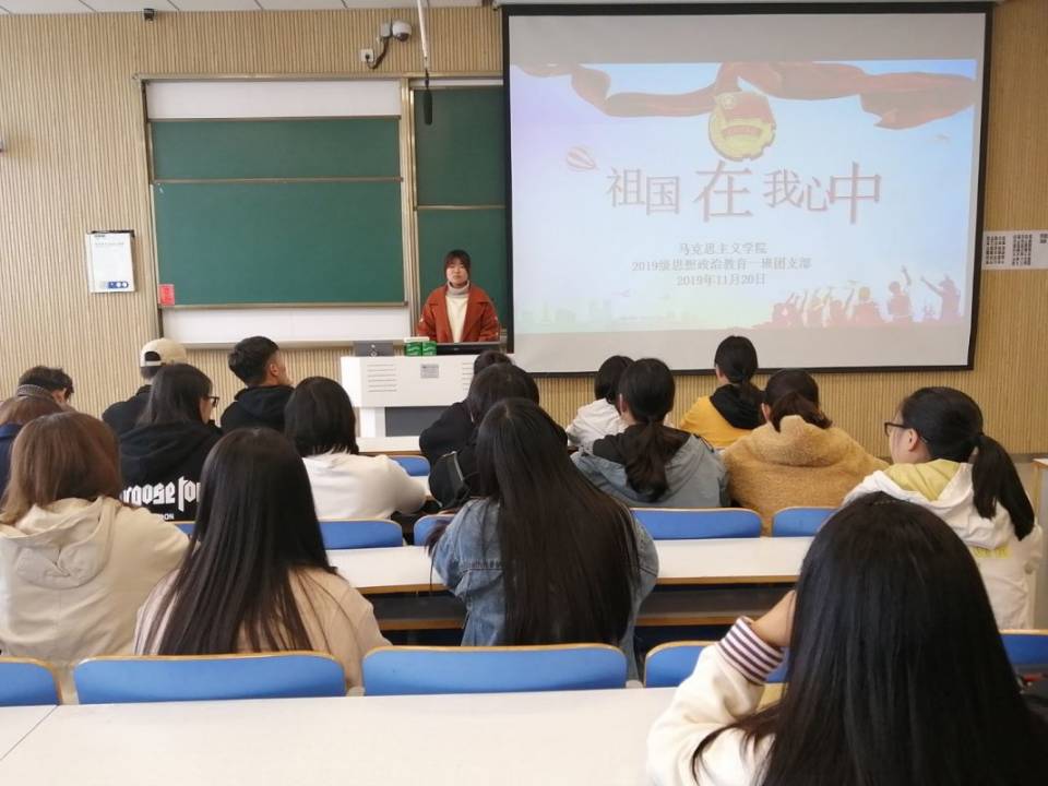 11月20日上午,77779193永利官网2019级思想政治教育第一团支部第三团小组在社科楼515教室召开祖国在我心中主题团课。第一团支部第三团小组全体成员参加本次团课。团课由团小组组长翟新芝主持。