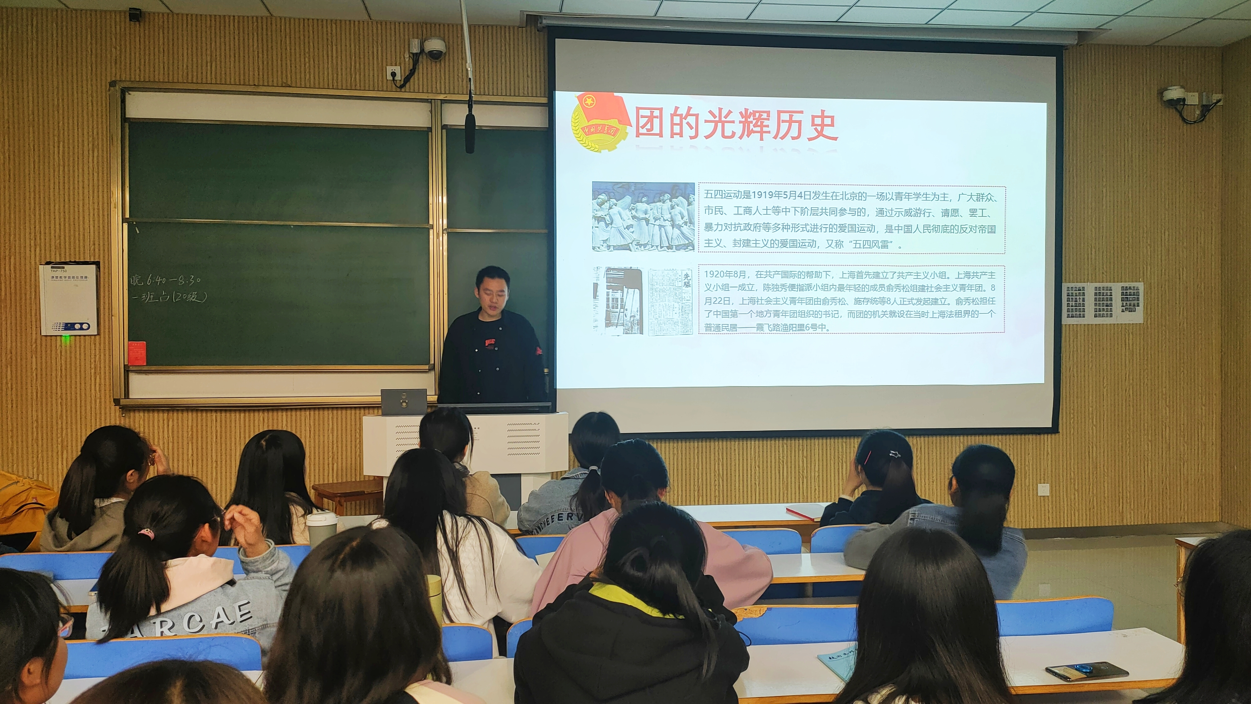 首先,朱紫峰带领同学们通过短视频浏览了共青团的光辉历史。他着重讲解了五四运动、上海共产主义小组、共产党的成立、建立抗日救国的青年团体和“一・二九”运动的故事以及中国共青团九十八年的光辉历程。接着,他向同学们讲解了他对共青团的认识,他强调共青团员要有坚定的共产主义理想和信念;要有优秀的品质和道德;要有品学兼优的素质和扎实的文化基础;更要成为学校学生中的表率和楷模。最后,他从三个方面提出了做新时代合格团员的要求:第一,要学习团章和团史;第二,树立自立自强的意识;第三,要树立创新发展意识。他希望同学们在今后的学习和生活中时刻注意用团员的标准要求和鞭策自己,刻苦学习,勤奋工作,遵纪守法,树一代新风。