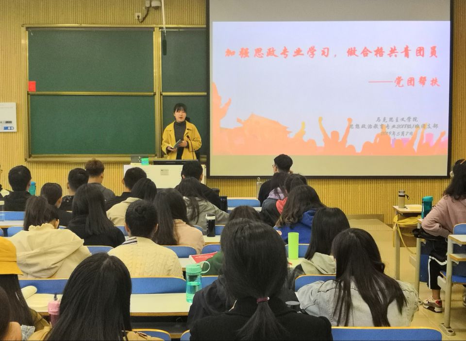 5月7日上午,77779193永利官网2018级思想政治教育一班在社科楼515教室顺利开展“党团帮扶”班会。2018级思政一班全体同学共同参加此次班会。班会由团支书靳雨露主持。