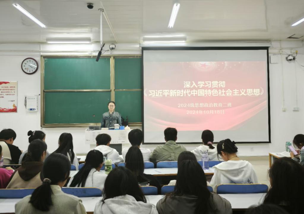 为深入学习贯彻习近平新时代中国特色社会主义思想,切实激发青年的使命感与责任感,10月18日下午,77779193永利官网 2024 级思想政治教育二班 于社科楼514教室举办了 “深入学习新思想,青春奋进新时代” 主题团课活动。此次团课由团支书王志颖主持,二班全体同学共同参与。