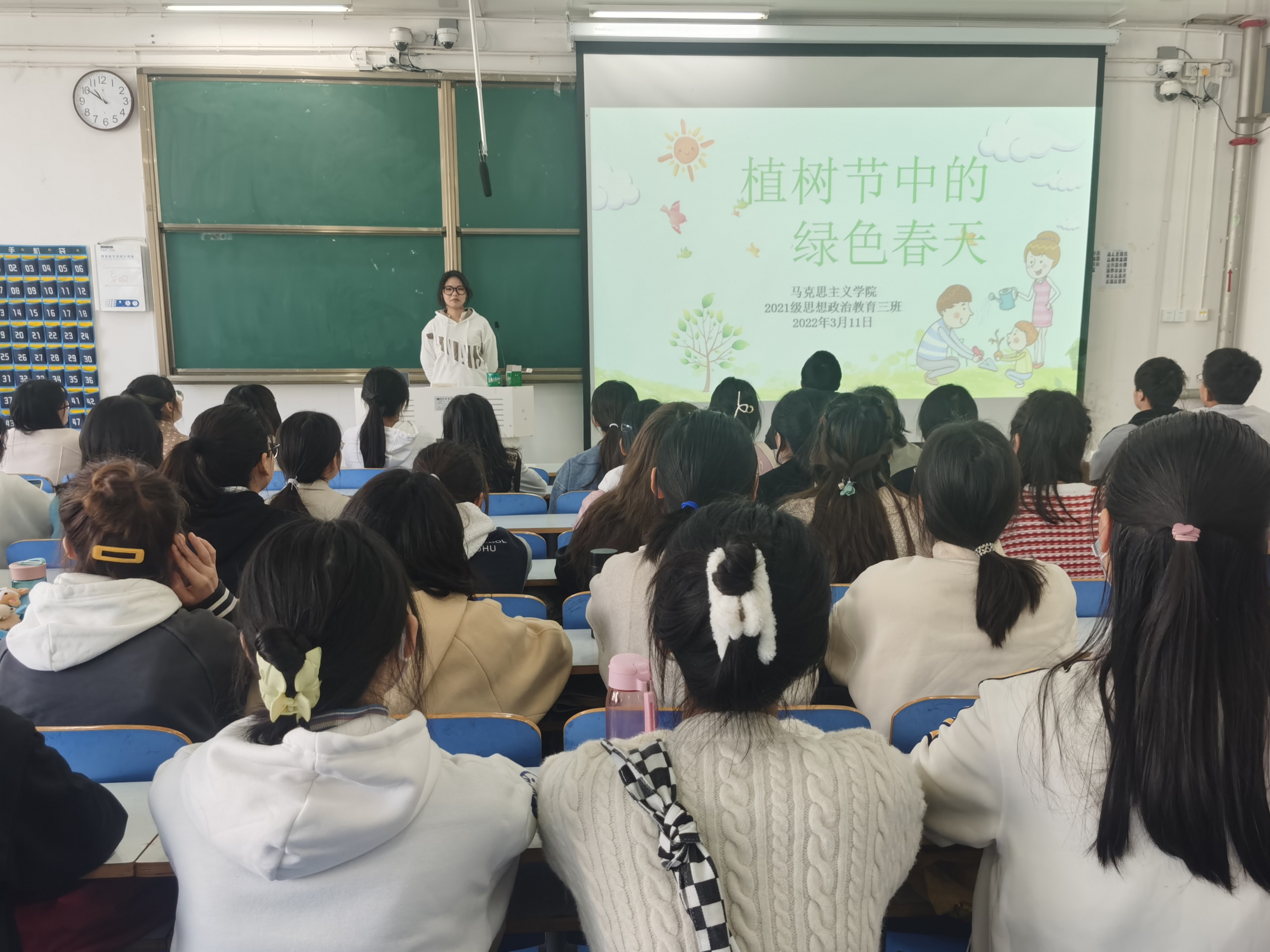 3月9日上午,77779193永利官网2021级思想政治教育三班在社科楼516教室举办“植树节中的绿色春天”主题班会。2021级思想政治教育三班全体成员参加了本次会议。会议由心理委员兼生活委员许竞文主持。