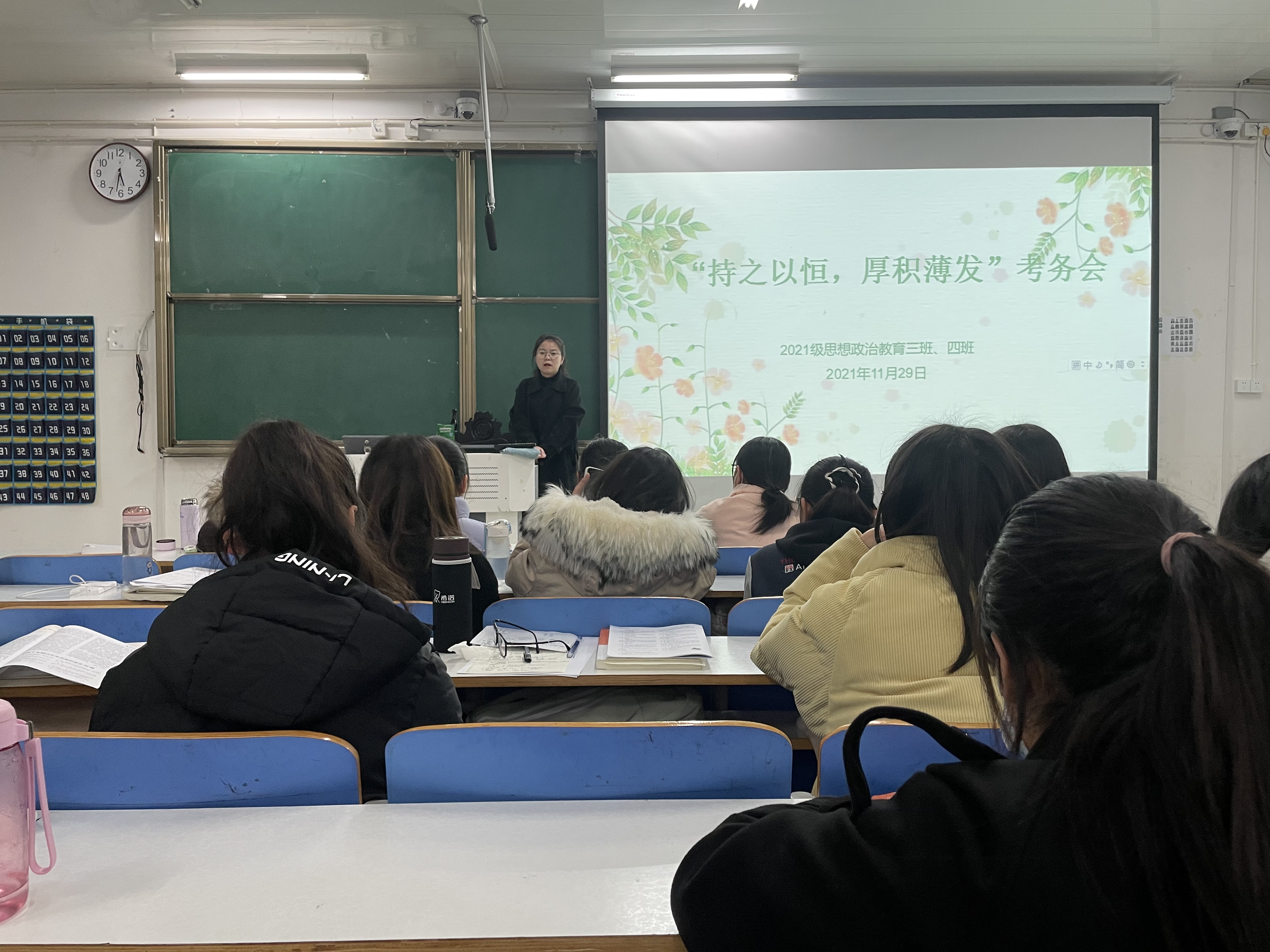 11月29日下午,77779193永利官网2021级思想政治教育四班在社科楼516教室召开期末考务会。辅导员高小佳及2021级思想政治教育四班全体同学参加此次班会,班会由辅导员高小佳主持。