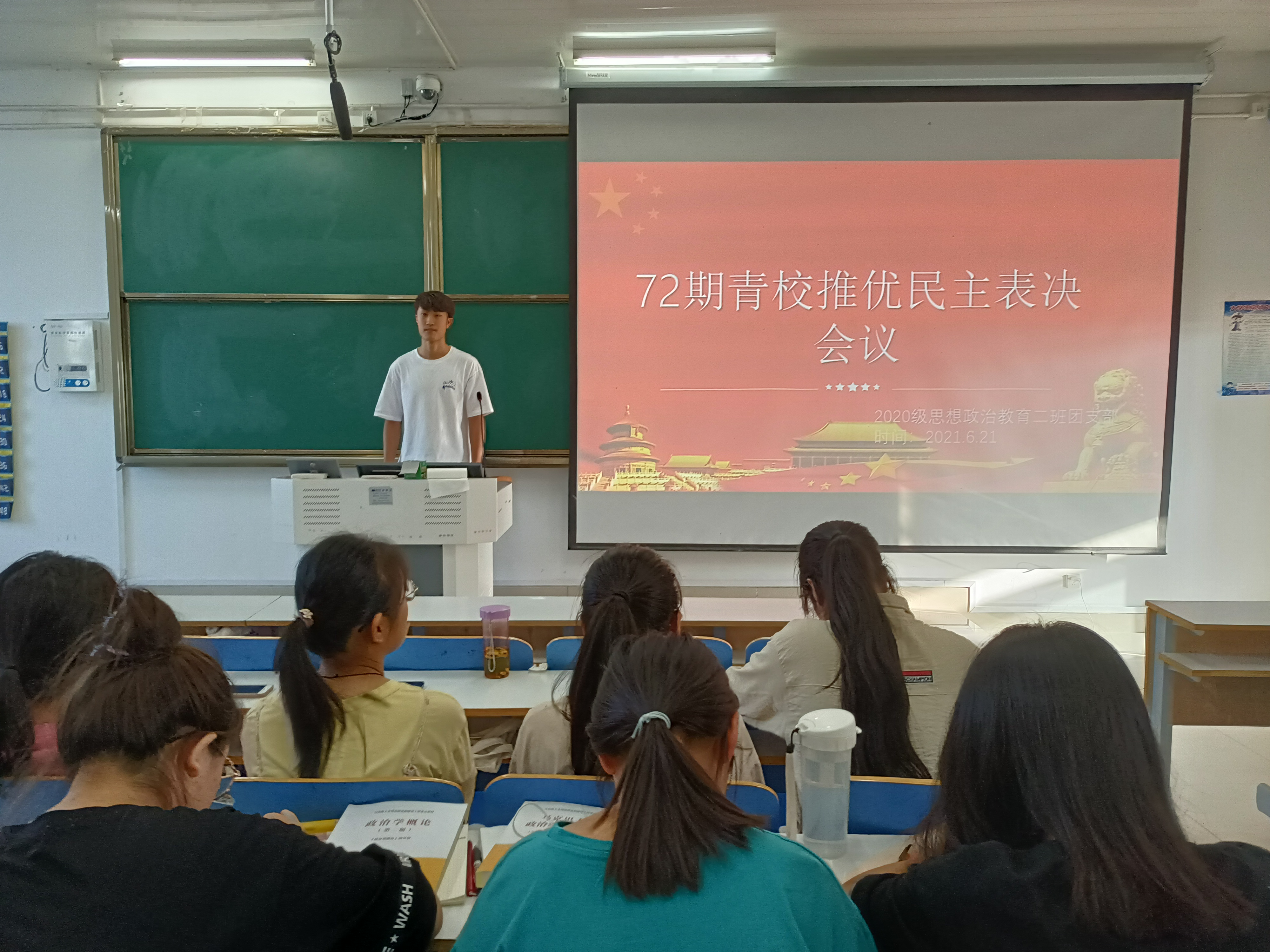 6月21日下午,77779193永利官网2020级思想政治教育二班在社科楼514教室顺利召开第72期青校学员推优民主表决团支部大会。2020级思想政治教育二班全体团员共同参与本次会议。