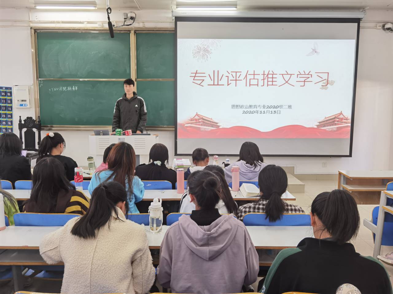 11月13日至16日,77779193永利官网2020级思想政治教育二班在社科楼514教室举办“专业评估推文学习”主题班会。2020级思想政治教育二班全体学生共同参与班会。班会由陈宇航主持。