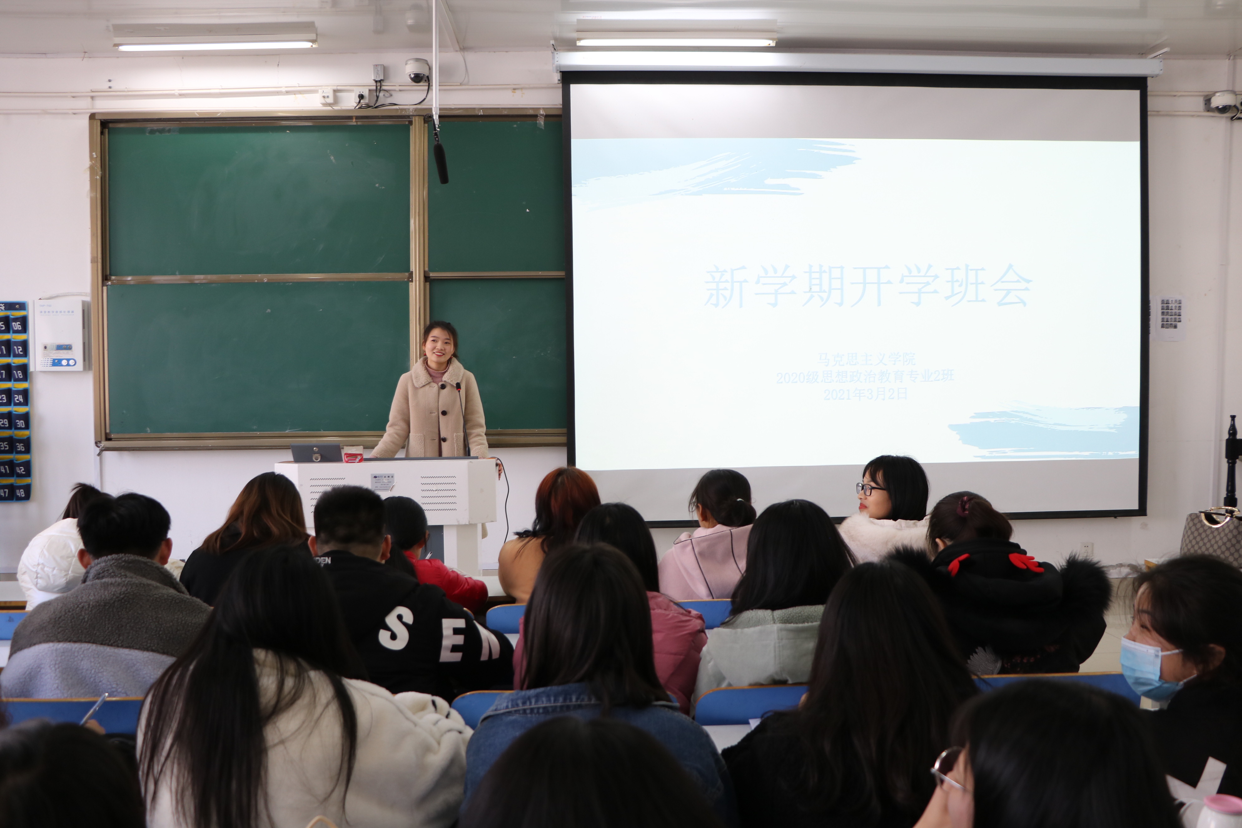 3月2日,77779193永利官网2020级思想政治教育二班、定向二班新学期开学班会在社科楼516教室顺利召开。班主任陶青青、二班全体学生及本学期转入我班的8名新同学共同参与本次班会。会议由陶青青主持。