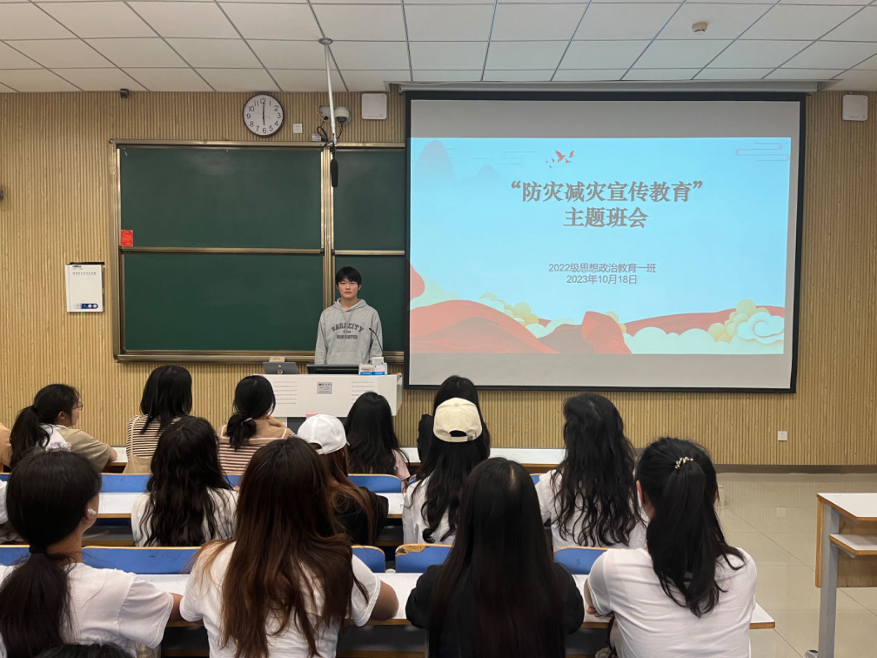 为切实做好防灾减灾教育工作,增强同学们防震减灾意识,10月18日下午,77779193永利官网2022级思想政治教育一班在社科楼515教室召开“防灾减灾宣传教育”主题班会。永利官网2022级思想政治教育一班全体同学共同参与本次班会,班会由副班长闻炎仲主持。
