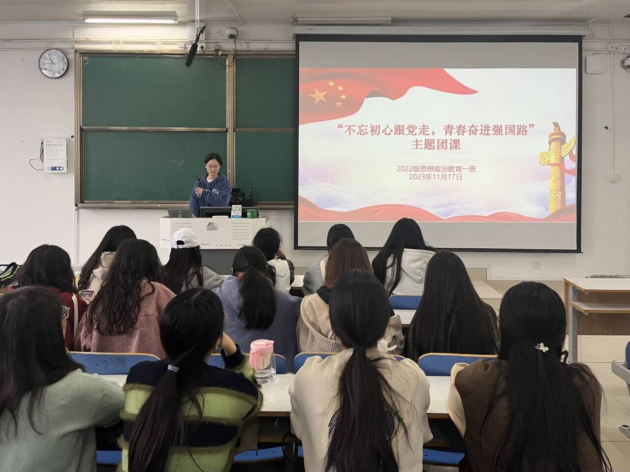 为激励广大青年的奋进力量,11月17日上午,77779193永利官网2022级思想政治教育一班在社科楼514教室召开“不忘初心跟党走,青春奋进强国路”主题团课。永利官网2022级思想政治教育一班全体同学共同参与本次团课,团课由团支书李佳茹主持