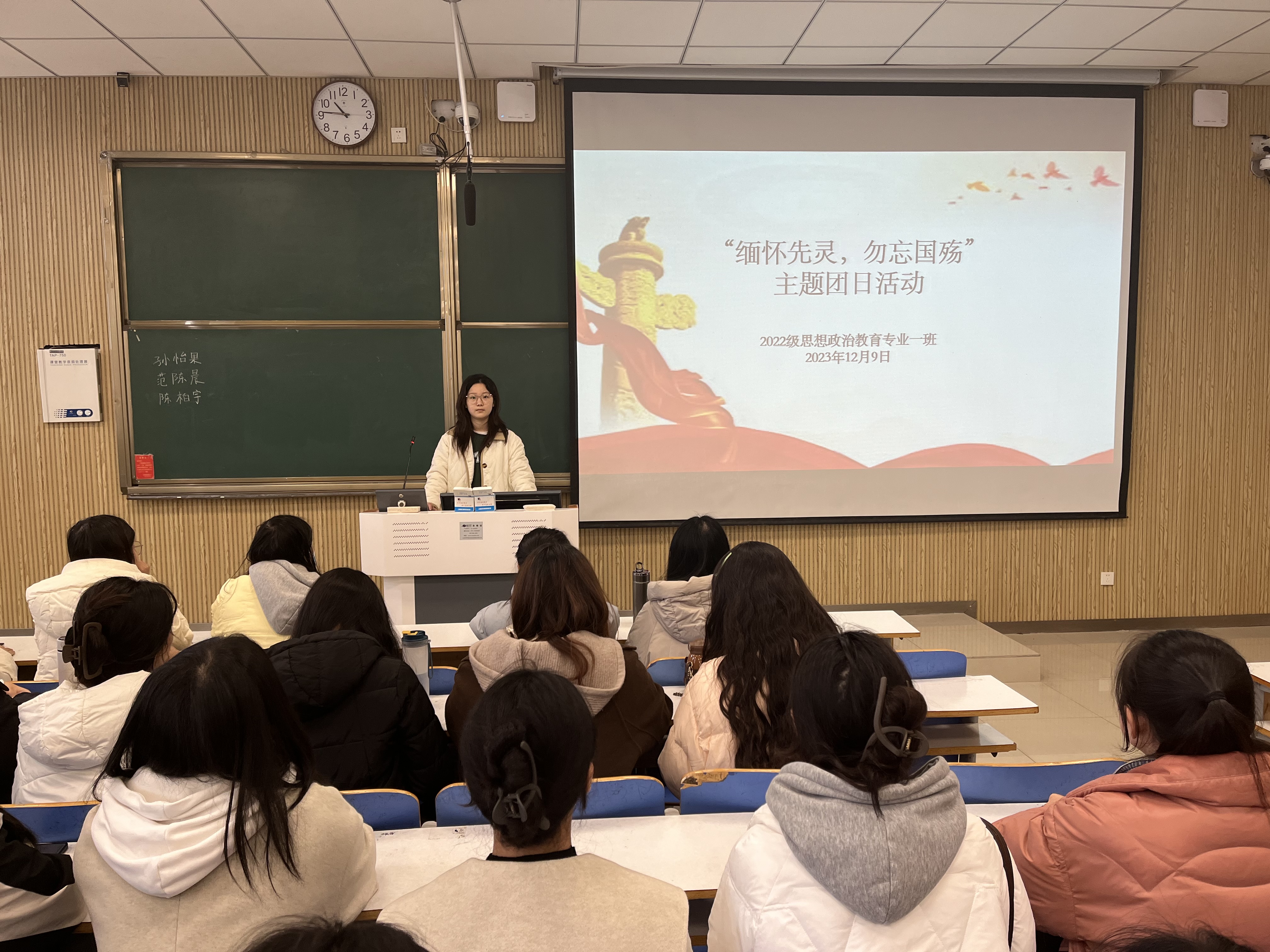 为推动同学们铭记历史,激发爱国热情,12月9日上午,77779193永利官网2022级思想政治教育一班在社科楼515教室召开“缅怀先灵,勿忘国殇”主题团课。永利官网2022级思想政治教育一班全体同学共同参与本次团课,团课由团支书李佳茹主持。