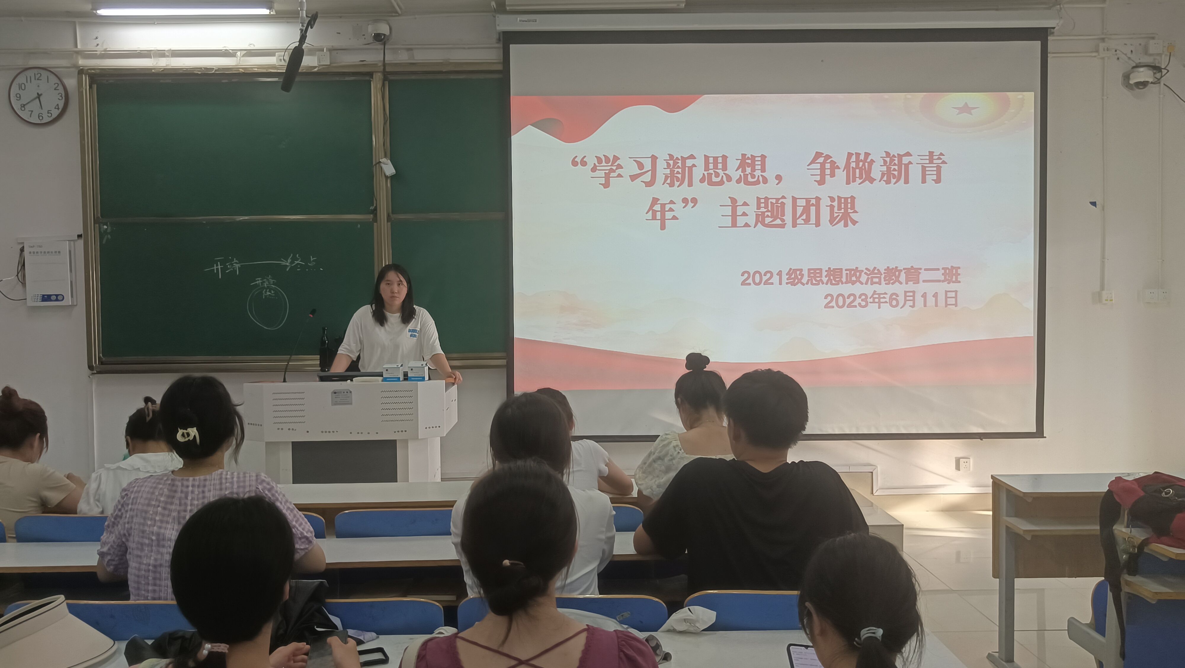 6月11日上午,77779193永利官网2021级思想政治教育二班在社科楼514教室召开“学习新思想,争做新青年”主题团课。2021级思想政治教育二班全体团员参加此次团课。团课由团支书王婧欣主持。