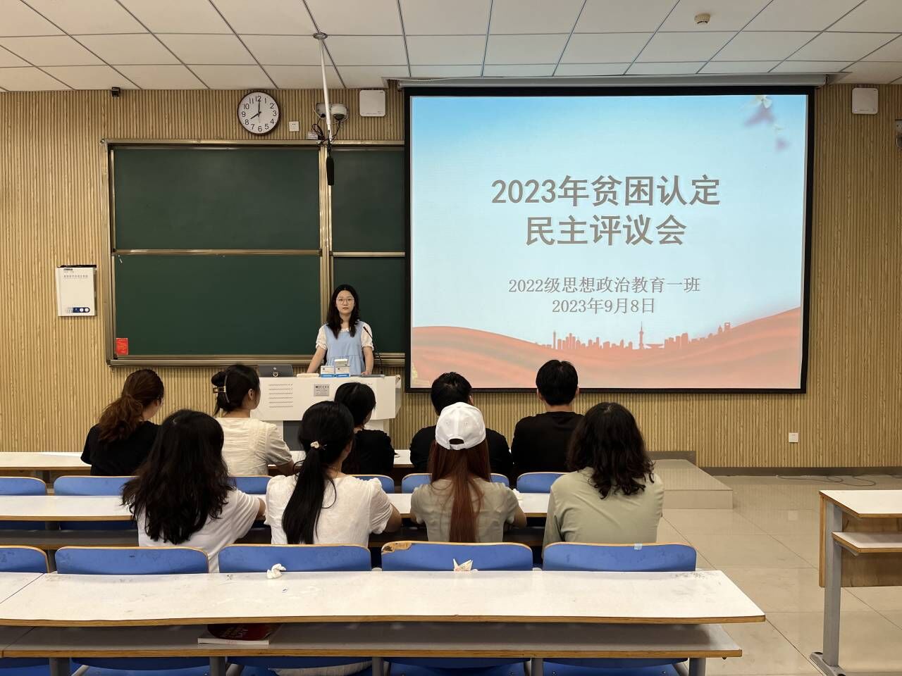 为切实保证国家制定的贫困资助政策真正落实到家庭经济困难的学生身上,9月8日上午,77779193永利官网2022级思想政治教育一班在社科楼515教室召开2023年贫困认定民主评议会。永利官网2022级思想政治教育一班班主任王明园和一班民主评议小组成员共同参与本次会议,会议由班长李佳茹主持。