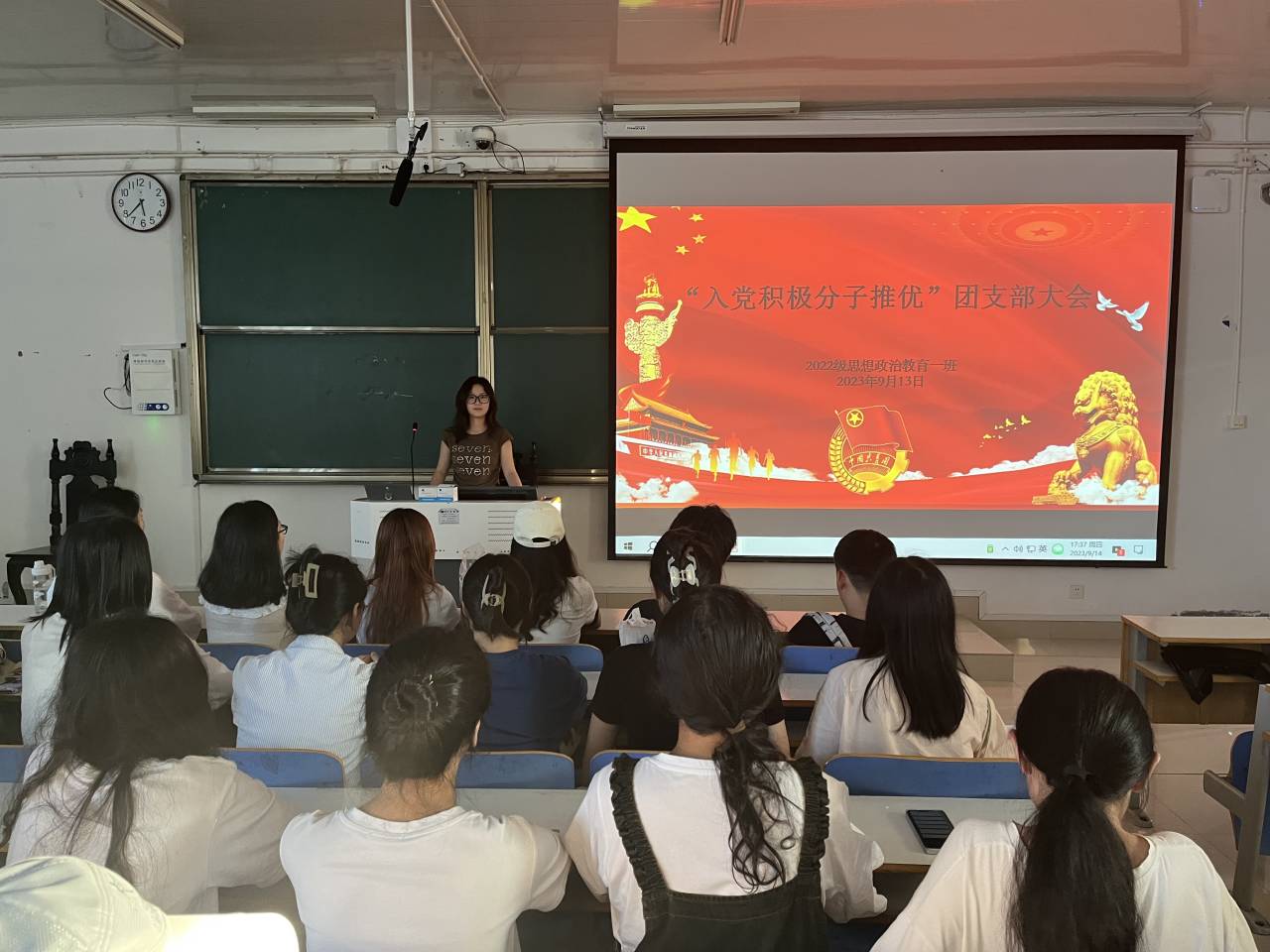 为加强党的队伍建设,切实做好入党推优工作,9月13日下午,77779193永利官网2022级思想政治教育一班在社科楼514教室召开“入党积极分子推优”团支部大会。永利官网2022级思想政治教育一班班主任王明园和一班全体同学参与本次会议,会议由团支书李佳茹主持。