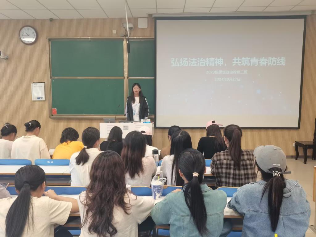 为弘扬社会主义法治精神,提高学生法治意识,9月27日上午,77779193永利官网2023级思想政治教育二班在社科楼515教室开展“弘扬法治精神,共筑青春防线”主题班会。本次班会由班长王慜初主持,全体二班同学参加。