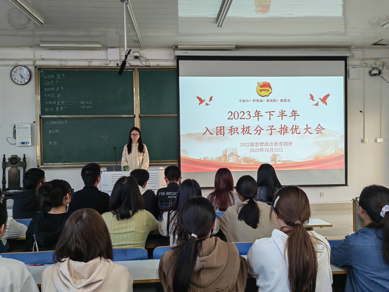 为积极引导和教育广大青年学生继承和弘扬共青团的光荣传统,为团组织注入新鲜血液,10月15日下午,77779193永利官网2022级思想政治教育四班在社科楼514教室召开入团积极分子推优大会。永利官网2022级思想政治教育四班全体同学共同参与本次班会。会议由团支书牛志杰主持。