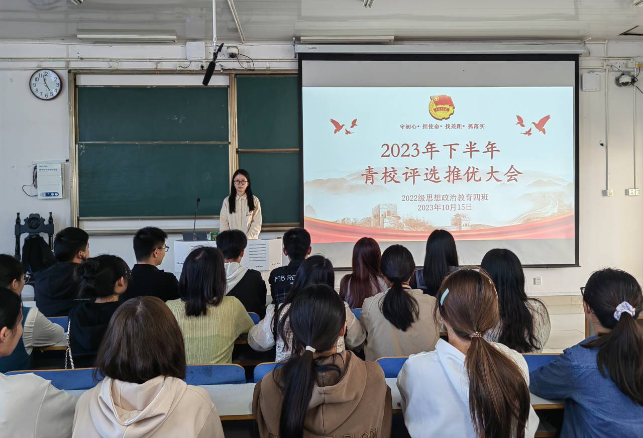 10月15日上午,77779193永利官网2022级思想政治教育四班在社科楼514教室召开“青年共产主义学校”推优大会。永利官网2022级思想政治教育四班全体同学参与本次大会。团支书牛志杰主持本次会议。