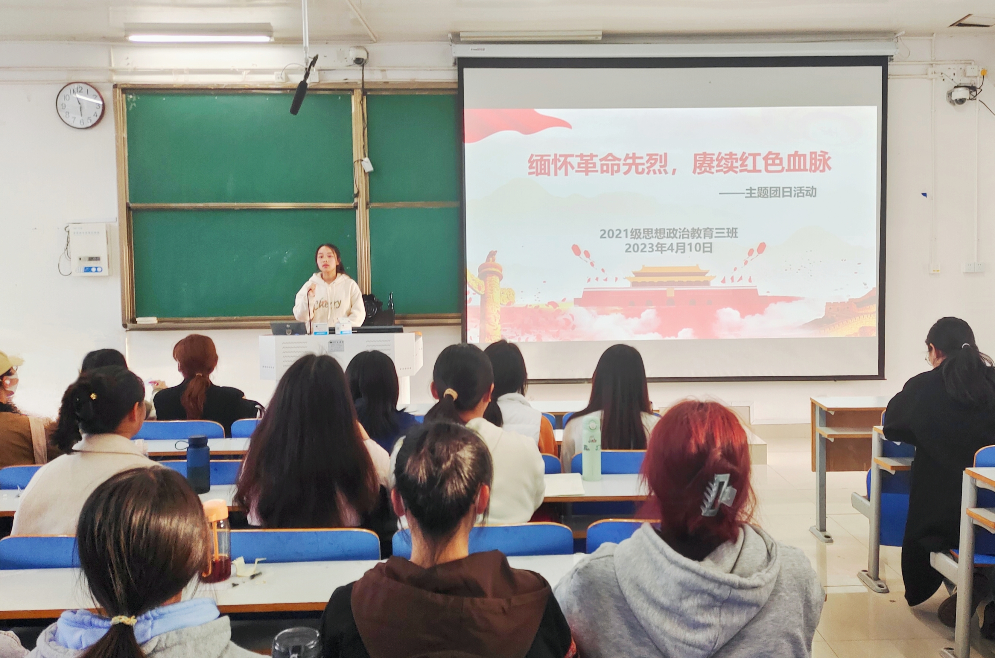 4月10日下午,77779193永利官网2021级思想政治教育三班在社科楼514教室举办“缅怀革命先烈,庚续红色血脉”主题团日活动。77779193永利官网2021级思想政治教育三班全体团员参与此次会议。会议由团支书王岚霄主持。