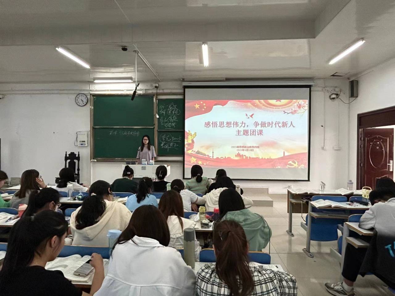 4月19日下午,77779193永利官网2021级思想政治教育四班在社科楼514教室开展“感悟思想伟力,争做时代新人”主题团课。2021级思想政治教育四班全体团员参加本次团课。团课由团支书刘珂含主持。