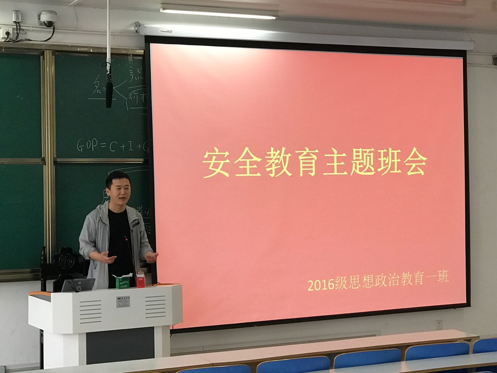 5月17号,2016级思想政治教育一班同学在社科楼516进行了“安全主题班会”。